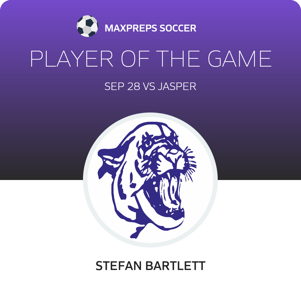 Congratulations to #6 Stefan Bartlett for being selected the Bloomington South Soccer Player of the Match.