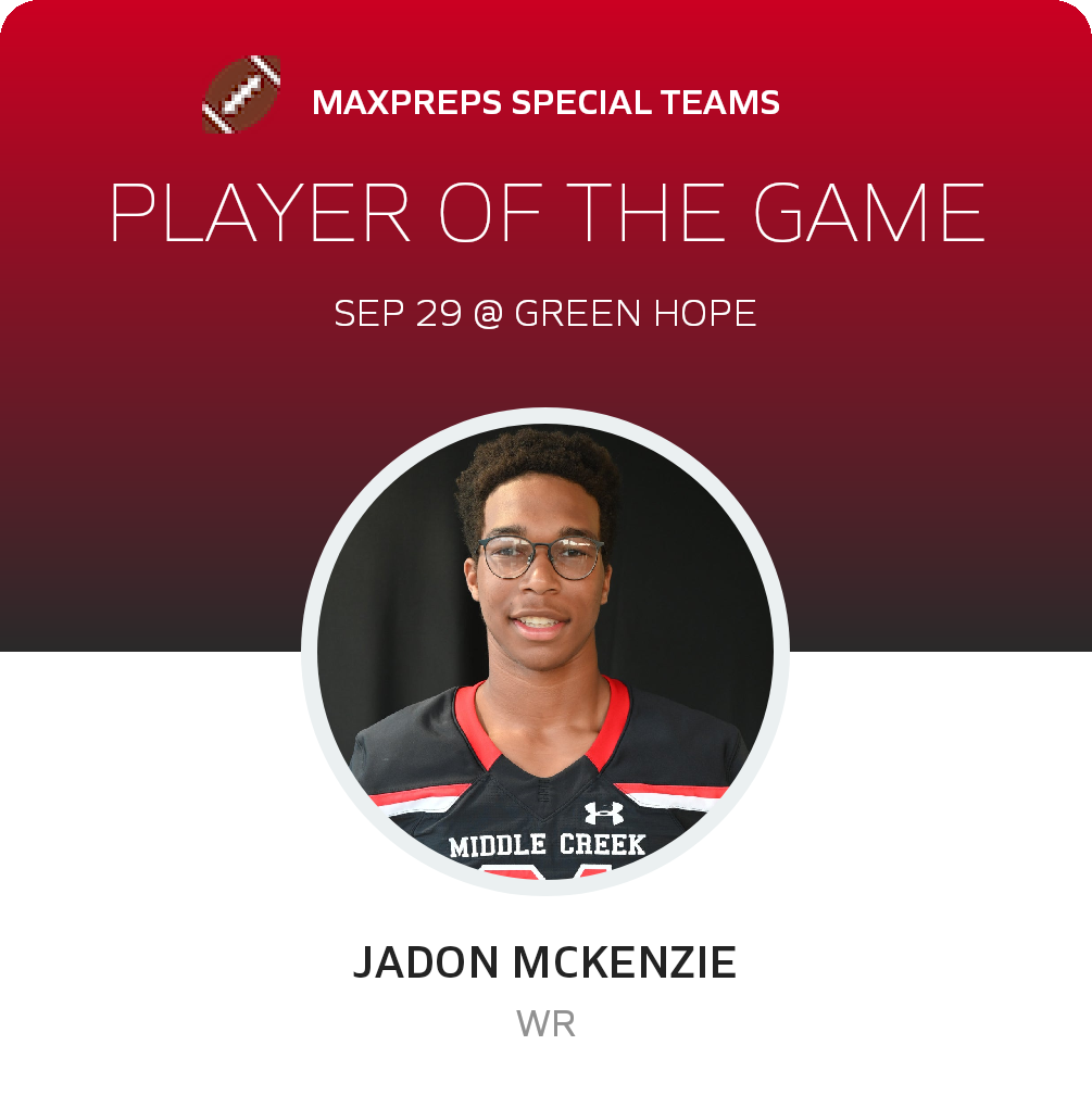 The Middle Creek Mustangs (Apex, NC) football defeated the host Green Hope Falcons (Cary, NC), 49-21 in Thursday's league bout.