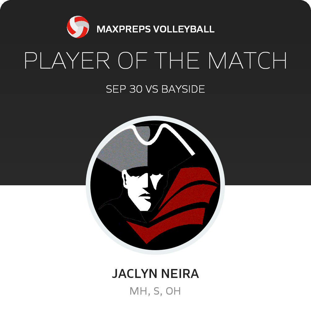 The Patriots had a good day offensively with 22 kills in 55 attempts, led by Brianna Lee 6, Maleny Argudo 4 and 3 each for Alexa Ho, Karen Pozo-Castro and Claudia Lopez. Karen had 11 assists and Alexa added 9.