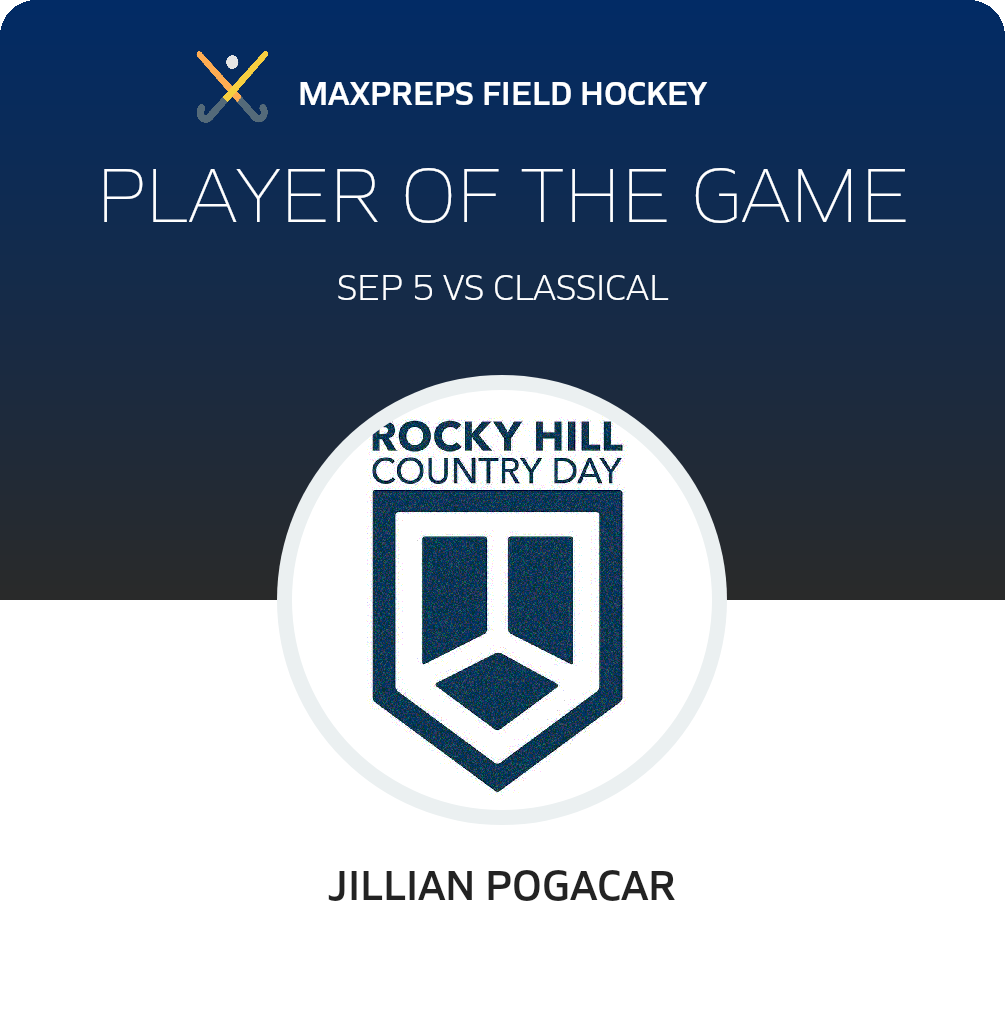 Congratulations to #22 Jillian Pogacar for being selected the Rocky Hill Country Day Field Hockey Player of the Game.