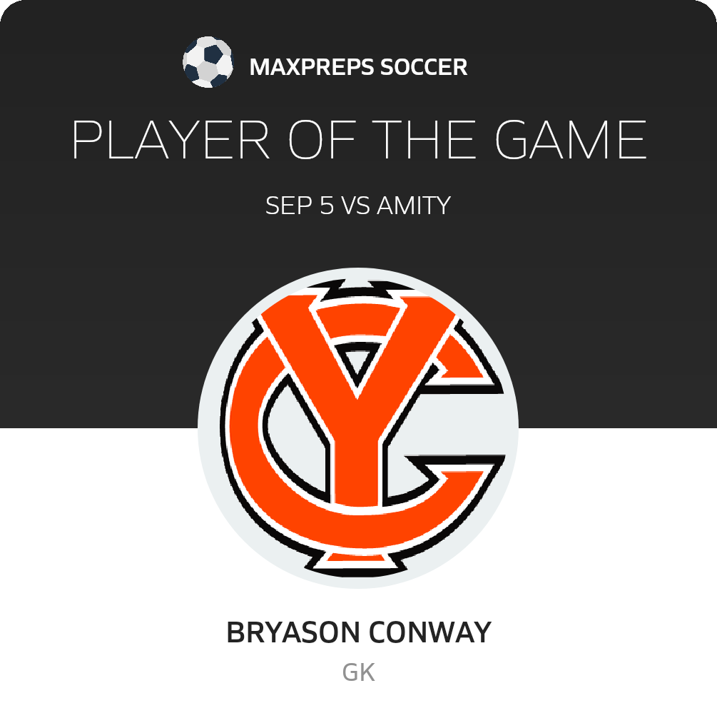 Congratulations to #21 Bryason Conway for being selected the Yamhill-Carlton Girls Soccer Player of the Match.