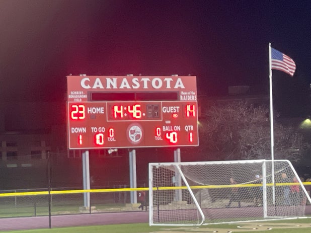 In Friday's non-league game, the Canastota Red Raiders (Canastota, NY) football team edged the visiting Skaneateles Lakers (Skaneateles, NY), by a tally of 30-27.