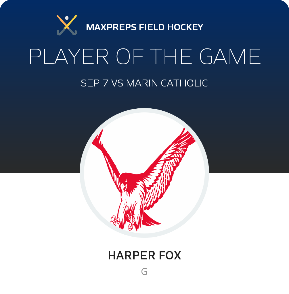 Congratulations to #25 Samantha Gardner for being selected the Marin Catholic Field Hockey Player of the Game.