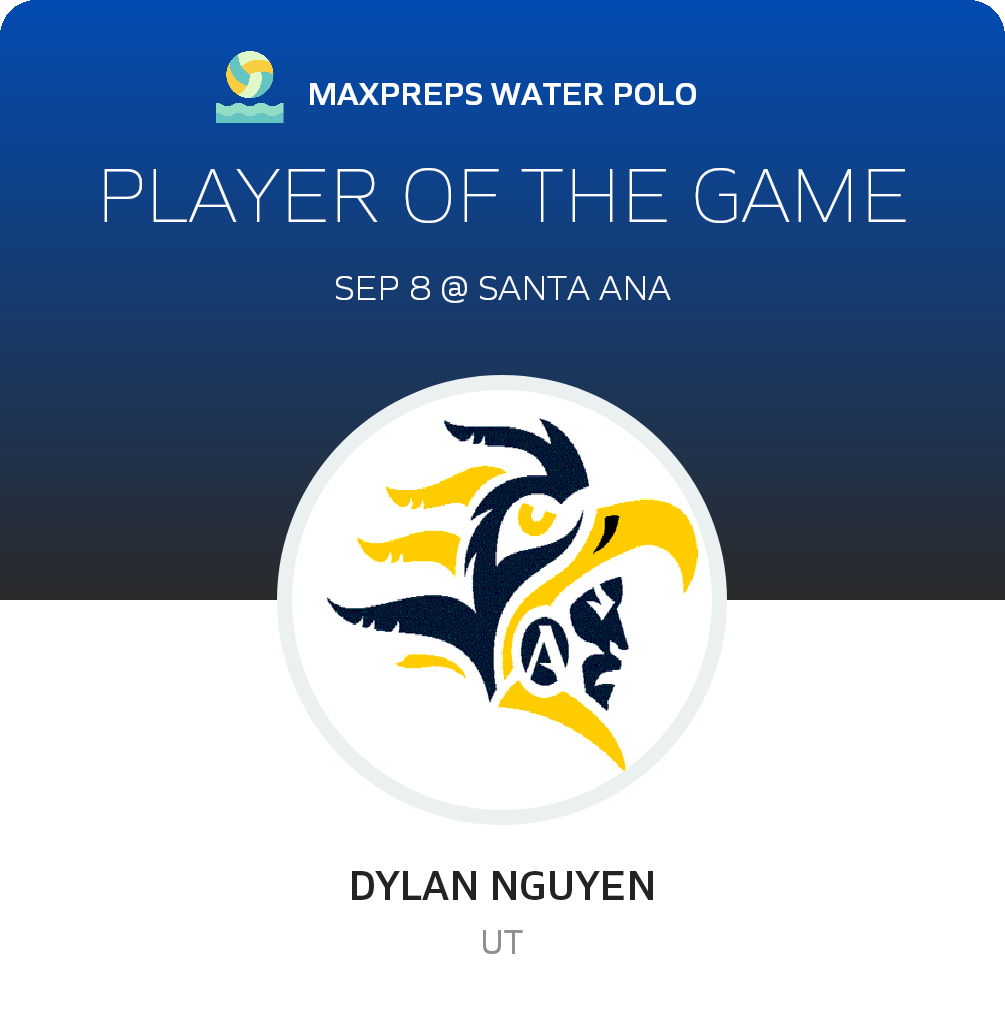 Congratulations to #8 Dylan Nguyen for being selected the La Quinta Water Polo Player of the Game.