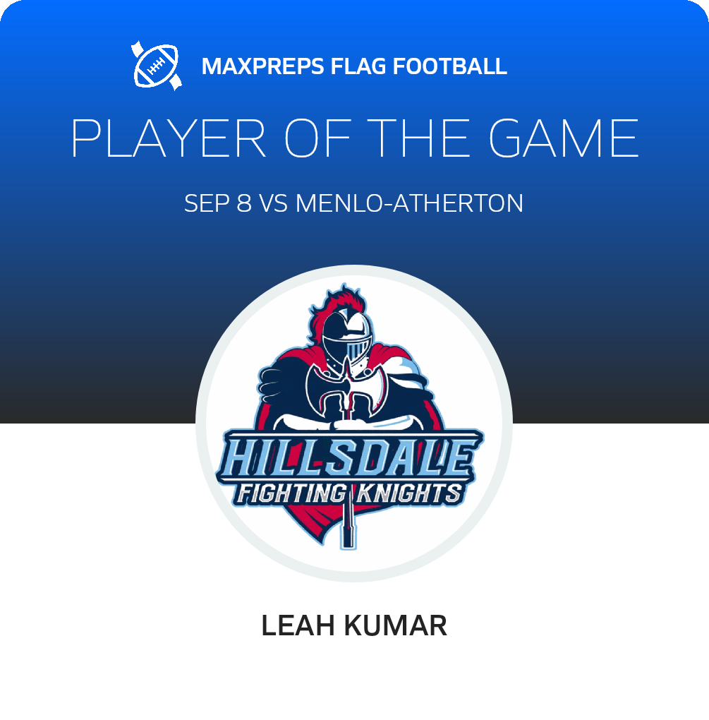 The Hillsdale Fighting Knights flag football team (San Mateo, CA), was topped 18-0 in Monday's non-league bout with the visiting Menlo-Atherton Bears (Atherton, CA)
