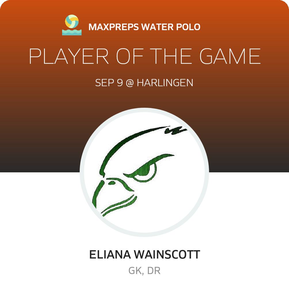Congratulations to #1 Eliana Wainscott for being selected the Harlingen South Girls Water Polo Player of the Game.