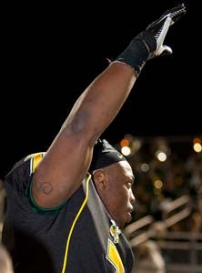 He's been described regularly as a man among boys with 4.37 speed in the 40-yard dash and the ability to bench press 360 pounds.