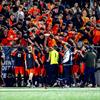 Coronado celebrates after beating Palo Verde 8-1 to capture the Class 5A Southern Region title. The Cougars went 25-0 this fall, outscoring opponents 187-12. (PHOTO: Jenni Webber)