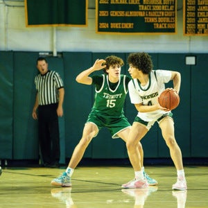 On Saturday, Mar 21, 2026, the Trinity Varsity Boys Basketball team won their Giant Center, Hershey game against West Catholic High School by a score of 52-49.