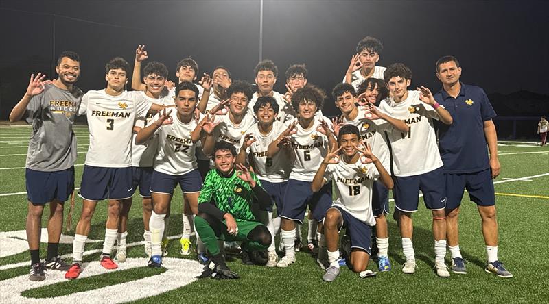 On Friday, Mar 6, 2026, the Freeman Varsity Boys Soccer team won their FHS Competition Field/Track match against Harmony School of Innovation High School by a score of 9-0.