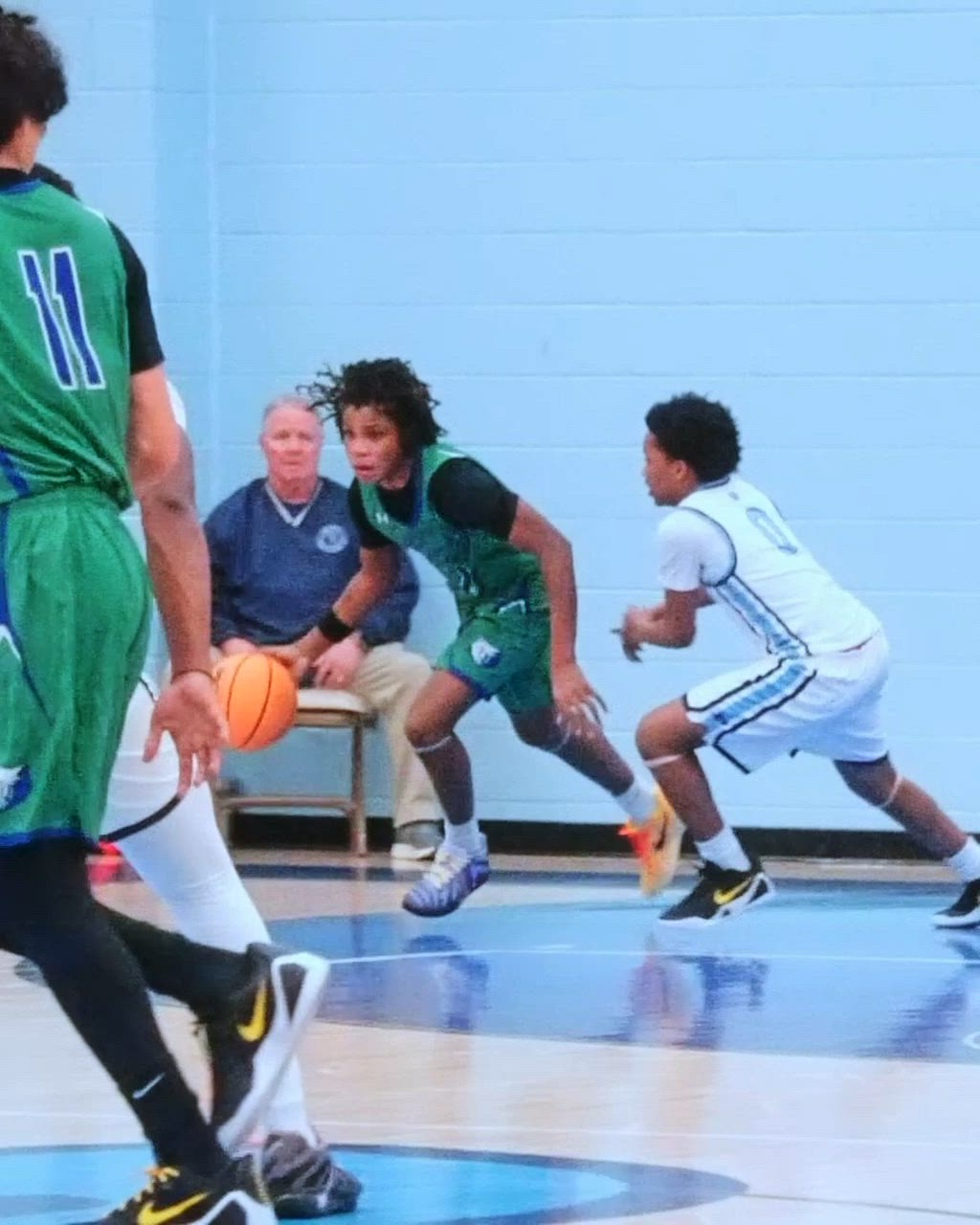 Freshman Landyn Ladson #2 with 2 of his 6 points on the night as Forest Park holds on to give Colgan Freshman their first loss of the season. The Freshman Bruins are improve to 6-1 while riding a 3 game win streak.